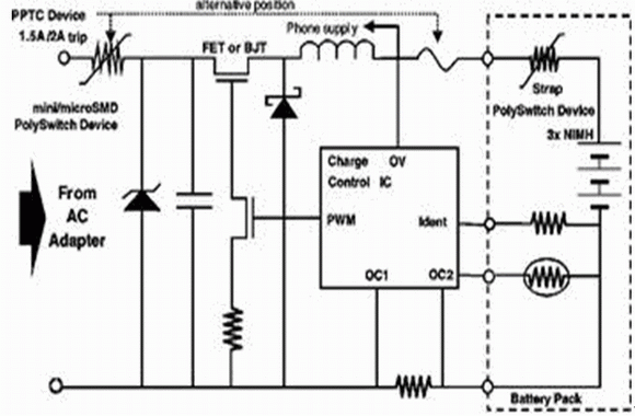 便攜式電子設備,例如蜂窩電話、PDA和手提電腦的電源都有特殊的過流保護要求。這些設備一般是通過AC/DC電源適配器供(充)電,將市電或未經穩壓的直流電轉變為合適的低壓直流電。由于越來越多的人開始在零配件市場上購買電源適配器以及通用充電器,將不兼容或有故障的電源適配器應用于便攜式設備的可能性也就大大增加。由于電源適配器的電壓、極性以及電流都可能與該設備的電路規范不相吻合,從而將會導致損壞甚至帶來安全隱患。