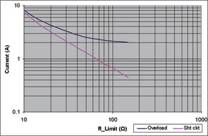 限流電路永遠都不會關閉芯片,但只會降低輸出電壓。如果器件在芯片不能維持功率電平保持足夠長的時間段的限流,熱限制電路最終將關閉這器件。