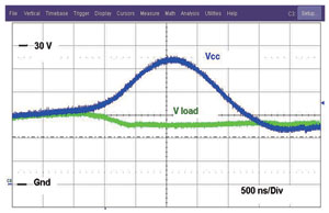 圖2展示NIS5132的一對曲線。導通較低的曲線時,激活的是短路曲線。一旦電流降低至低于這個電平,FET就完全導通(線性區域),接下來面對的就是過載電平。如果電流達到過載電平,FET的柵驅動將立即減小,而漏極至源極電壓將增加,并會將工作模式改為短路電平模式。這器件在過載電平時不能維持穩態工作。