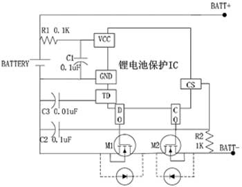 單節鋰電池保護IC的應用電路很簡單,只需外接2個電阻、2個電容和2個MOSFET,其典型應用電路如圖1所示。