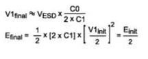 4. 能夠在瞬間導致IC損壞的能量相當于微焦級,有外部電源去耦電容時,考慮這一點非常重要,從電源電容(C1)傳遞到IC的能量是: