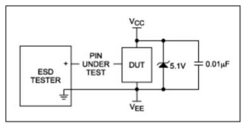 * 確定應用場合的測試電壓(VESD),典型值為2kV的HBM或100V MM模式;