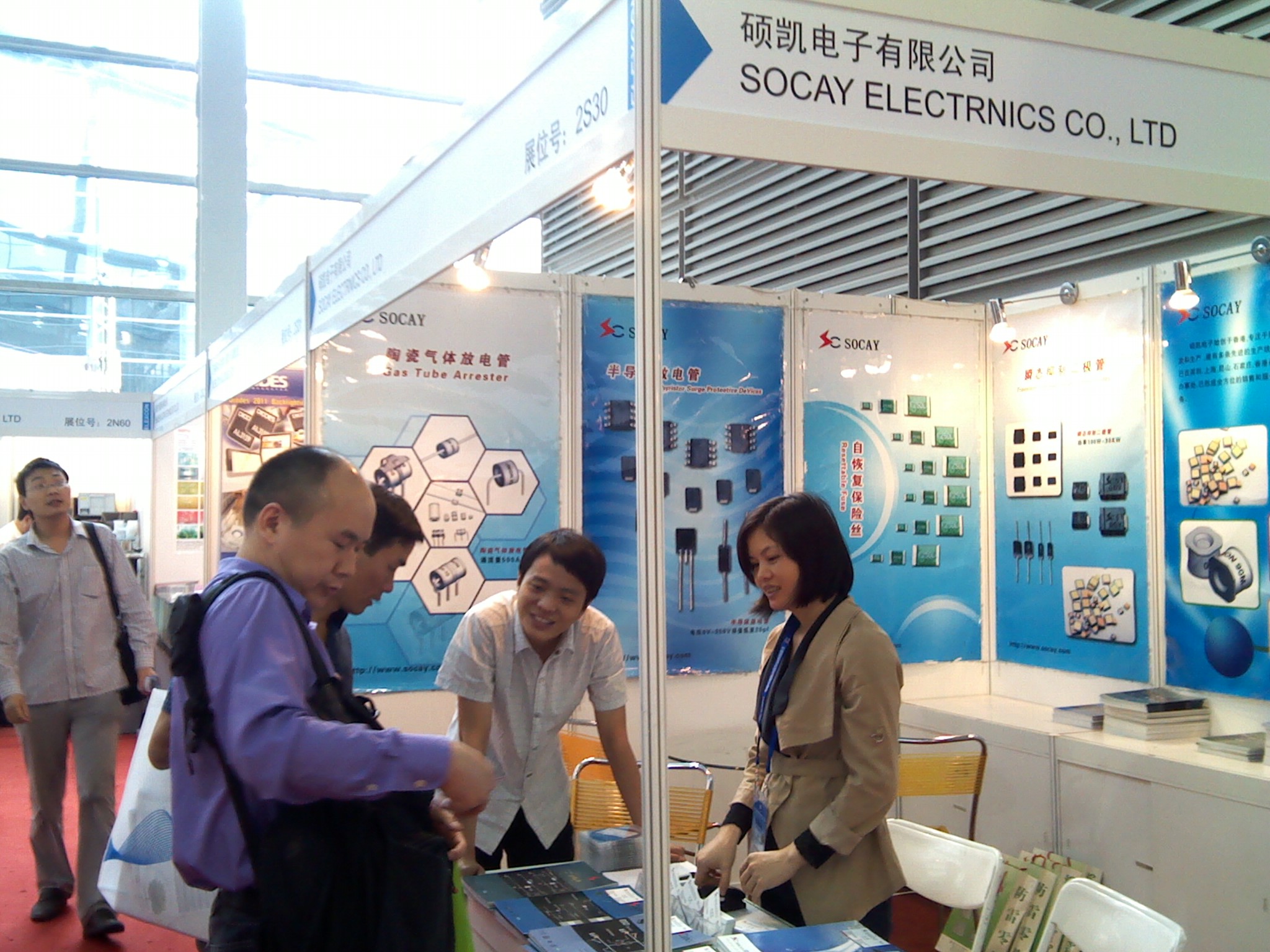 目前,碩凱電子的主要產(chǎn)品是陶瓷氣體放電管、瞬態(tài)抑制二極管、ESD放電二極管、貼片自恢復(fù)保險(xiǎn)絲、半導(dǎo)體放電管、貼片壓敏電阻、熔斷式保險(xiǎn)絲等,此次展會(huì)主要展示的是其陶瓷氣體放電管和瞬態(tài)抑制二極管。