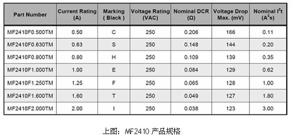 * MF2410 貼片保險絲規(guī)格介紹