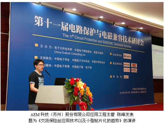 電路保護(hù)專業(yè)技術(shù)與解決方案供應(yīng)商AEM科技股份有限公司于2012年4月10日出席了由CNT Networks、中國電子展組委會(huì)和China Outlook Consulting聯(lián)合舉辦的第十一屆電路保護(hù)與電磁兼容技術(shù)研討會(huì)。