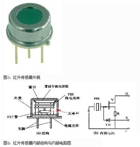 被動(dòng)式紅外傳感器有三個(gè)關(guān)鍵性的元件:菲涅爾濾光透鏡,熱釋電紅外傳感器(PIR)和匹配低噪放大器。菲涅爾透鏡有兩個(gè)作用:一是聚焦作用,即將熱釋紅外信號(hào)折射在PIR上:二是將探測區(qū)內(nèi)分為若干個(gè)明區(qū)和暗區(qū),使進(jìn)入探測區(qū)的移動(dòng)物體(人)能以溫度變化的形式在PIR上產(chǎn)生變化的熱釋紅外信號(hào)。一般還會(huì)匹配低噪放大器,當(dāng)探測器上的環(huán)境溫度上升,尤其是接近人體正常體溫(37℃)時(shí),傳感器的靈敏度下降,經(jīng)由它對(duì)增益進(jìn)行補(bǔ)償,增加其靈敏度。輸出信號(hào)可用來驅(qū)動(dòng)電子開關(guān),實(shí)現(xiàn)LED照明電路的開關(guān)控制。圖5是紅外傳感器外貌,圖6 是紅外傳感器內(nèi)部結(jié)構(gòu)與內(nèi)部電路圖。圖7 是帶紅外傳感器的LED照明燈具,這是一款E27標(biāo)準(zhǔn)螺口燈頭的燈具,它的電源適用范圍是 AC180V-250V (50/60Hz), 紅外傳感器檢測范圍大約在3M—15M,它的標(biāo)準(zhǔn)產(chǎn)品 IFS-Bulb 3W燈具達(dá)80 lm ,5W燈具達(dá)140 lm 。在LED光源模塊的中央部分嵌入紅外線傳感器。一旦紅外傳感器檢測到人的體溫,LED電燈泡將會(huì)在50秒內(nèi)自動(dòng)開啟與關(guān)閉。適用于任何一種室內(nèi)應(yīng)用,如走廊、儲(chǔ)藏室、樓梯和大廳入口處。
