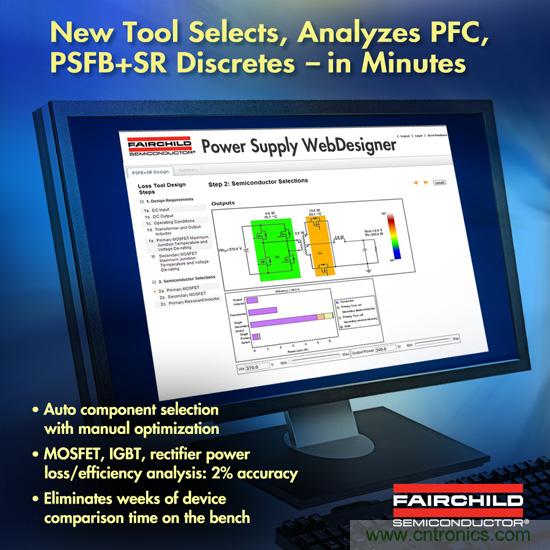 飛兆半導(dǎo)體公司最近將Power Supply WebDesigner (PSW) - 一款在線設(shè)計和模擬工具,可在一分鐘內(nèi)提供完整的設(shè)計–進(jìn)一步強化,引入傳動系分立式(MOSFET/IGBT/整流器)器件功率損耗和效率分析工具。