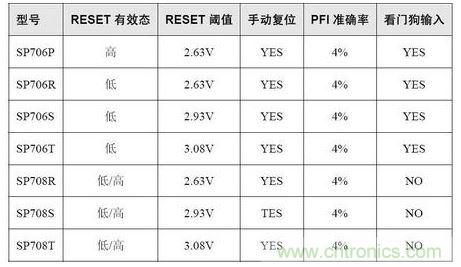 因?yàn)槭?.3V系統(tǒng),使用的外置看門狗型號(hào)為SP706TE,特征如下: