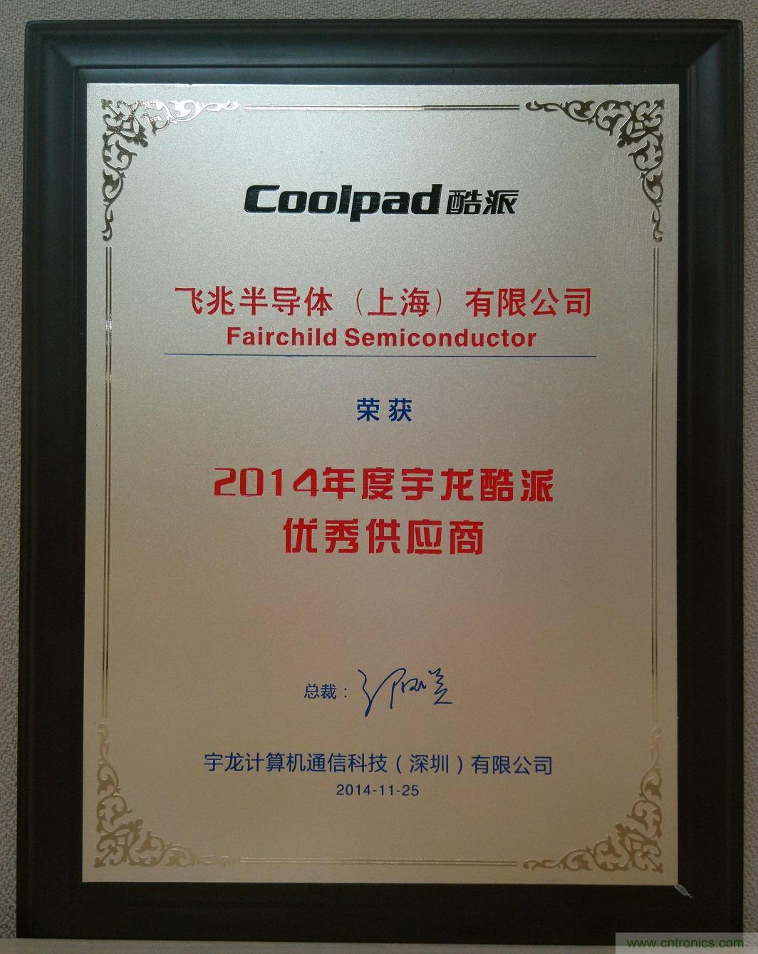 Fairchild被評(píng)為宇龍 2014 年度最佳供應(yīng)商