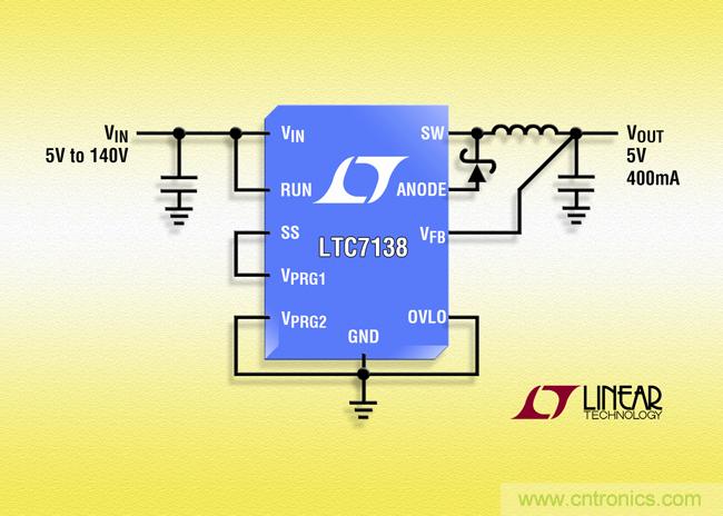 【導(dǎo)讀】近日,凌力爾特公司宣布推出 擁有140V 輸入的高效率降壓型轉(zhuǎn)換器 LTC7138,該器件提供高達(dá) 400mA 連續(xù)輸出電流,靜態(tài)電流僅為 12µA 的 140V、400mA 。LTC7138 在 4V 至 140V 輸入電壓范圍內(nèi)工作,因此非十分適合電信、汽車、航空電子和工業(yè)等多種應(yīng)用。