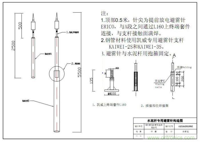 此設計圖適用于線路鐵塔(等級10KV-500KV),在個別鐵塔無法安裝避雷線(地線)的時候更是唯一的防雷擊解決辦法。我公司與電力設計院公司聯合研發設計的此種保護方式在一些常規條件下無法安裝避雷地線的情況下得到大量使用,實踐證明了此種設計的科學性和安全性。