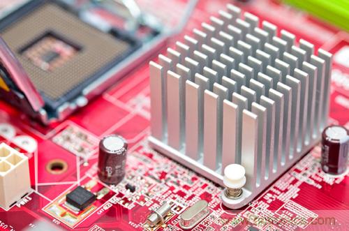 對于任何可能過熱的元器件,都應(yīng)當(dāng)研究能否通過使用散熱器來有效地降低元器件溫度。如果氣流方向主要與封裝的一側(cè)垂直,則板型(或擠壓)鰭片散熱器可能最合適。否則,應(yīng)當(dāng)考慮釘狀鰭片散熱器。