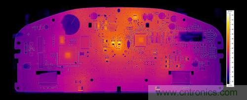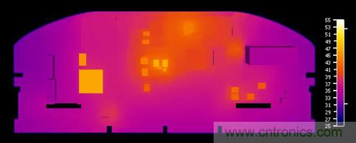 圖 4:設(shè)計期間的 CFD 結(jié)果與利用紅外攝像機(jī)測量的實際 PCB 的對比