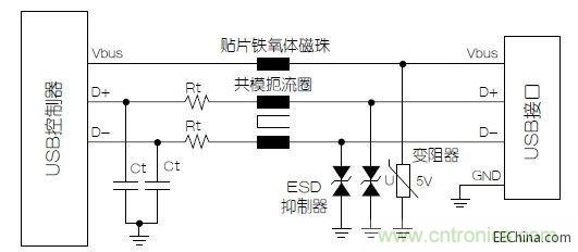 問題:其中一些點可能不受影響,這些點包括外購USB控制器的技術性實現,或最終用戶使用“便宜的”USB電纜。因此必須采取一些預防性措施,防止接口受到可能損壞USB控制器的外部干擾的影響,同時通過電纜限制信號的干擾輻射量。