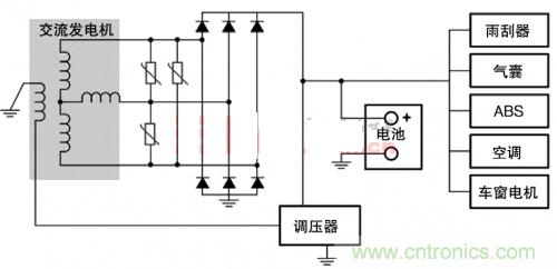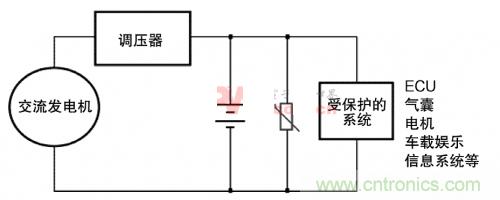 圖3.MOV對汽車子系統供交流發電機瞬態保護