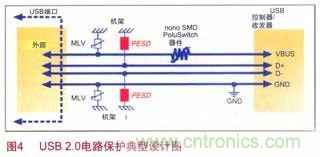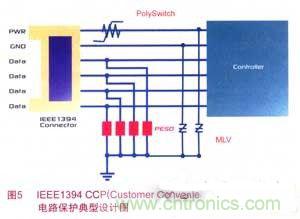 隨著USB/IEEE1394通信速率的增加,電路日趨小型化和敏感化,對(duì)電路瞬態(tài)的保護(hù)就顯得更為重要。每當(dāng)連接和斷開PND,電路都會(huì)受到瞬態(tài)過(guò)電壓/過(guò)電流的沖擊,故需要在電源和地上分別抑制瞬間過(guò)壓。由于鉗位而不會(huì)引起供電中斷,且價(jià)格較低,MLV常被采用。為滿足USB和IEEE1394接口規(guī)范要求,PolySwitch器件通常用于防止USB電源線上因過(guò)電流造成的設(shè)備損壞,是即插即用型應(yīng)用設(shè)備的理想選擇。