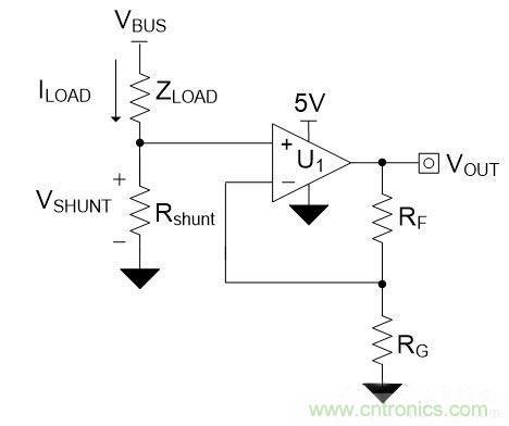 在設計低側電流感應電路時,高性價比的方法之一是使用非反相配置運算放大器(op amp)。圖1是使用運算放大器的典型低側電流感應電路原理圖。
