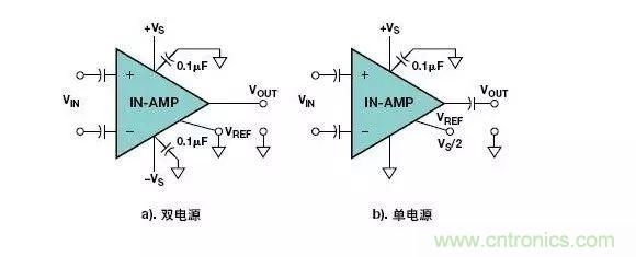 當設(shè)計帶有儀表放大器和運算放大器的電路時,這方面的考慮很重要。電源電壓抑制技術(shù)用來隔離放大器免受其電源電壓中的交流聲、噪聲和任何瞬態(tài)電壓變化的影響。這是非常重要的,因為許多實際電路都包含、連接著或存在于只能提供非理想的電源電壓的環(huán)境之中。另外電力線中的交流信號會反饋到電路中被放大,而且在適當?shù)臈l件下會引起寄生振蕩。