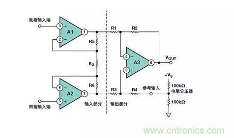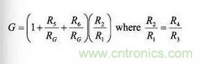 在該電路中,由于兩只輸入電阻器之間的失配和(或)兩端輸入偏置電流的失配會產(chǎn)生一個小的失調(diào)電壓誤差。為了使失調(diào)誤差最小,在儀表放大器的兩個輸入端之間可以再接一只電阻器(即橋接在兩只電阻器之間),其阻值大約為前兩只電阻器的1/10(但與差分源阻抗相比仍然很大)。