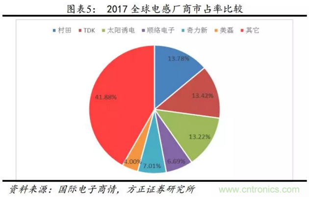 磁性產品性能不輸村田、TDK,被動元器件全球第三,緊追村田、TDK。加之國內手機廠商崛起,憑借技術與供貨渠道雙重優勢穩固市場地位,為傳統電感內資絕對龍頭。