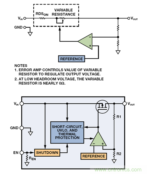 圖 2. 低壓差調節器的框圖