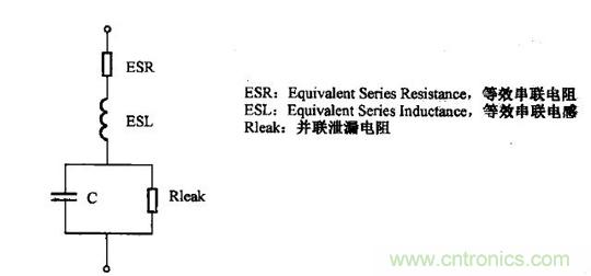 其中寄生電感有電容的引腳電感和電容器件兩級之間的等效電感串聯而成,主要取決于封裝。寄生電阻有電容的引腳電阻和電容器件兩級之間的等效電阻串聯而成,主要取決于電容的工作溫度、工作頻率、電容體本身的導線電阻等;而泄露電阻取決于電容本身的泄露特性。