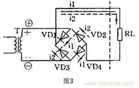 像我們ASEMI的整流橋一般情況下也都是全波橋式整流,全波橋式整流用的是4個二極管組成的橋式電路,這種電路只能有單個次級線圈的變壓器。見圖3,負載上的電流波形和輸出電壓值與第二種全波整流電路是完全相同的。