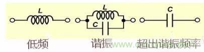 電感線圈在低頻、諧振及工作頻率高于諧振頻率時(shí)會(huì)呈現(xiàn)不同的特性,特別是當(dāng)工作頻率超過諧振頻率是電感不再是電感而變成的電容。圖中的電容是線圈的匝間電容。