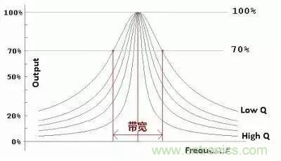 有些電路我們需要高 Q 值,比如振蕩器,Q 值越高越容易起振,比如收音機(jī)機(jī)調(diào)諧回路,Q 值越高選臺(tái)時(shí)越不容易串臺(tái),這主要是 Q 值高時(shí)-3dB帶寬變狹的緣故。如下圖所示: