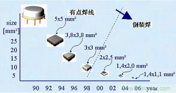 2)改進器件的封裝形式,現在已經由傳統的圓形金屬殼封裝改為方形或長方形扁平金屬封裝或LCCC(無引線陶瓷芯片載體)表面貼裝的形式,采用體積更小的CSP封裝形式,目前封裝尺寸已做到1.1mm x 0.9mm;