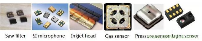 - RF聲表濾波器、硅麥克風、MEMS噴墨頭、氣體類傳感器、壓力、磁傳感器和紅外光源已批量生產。