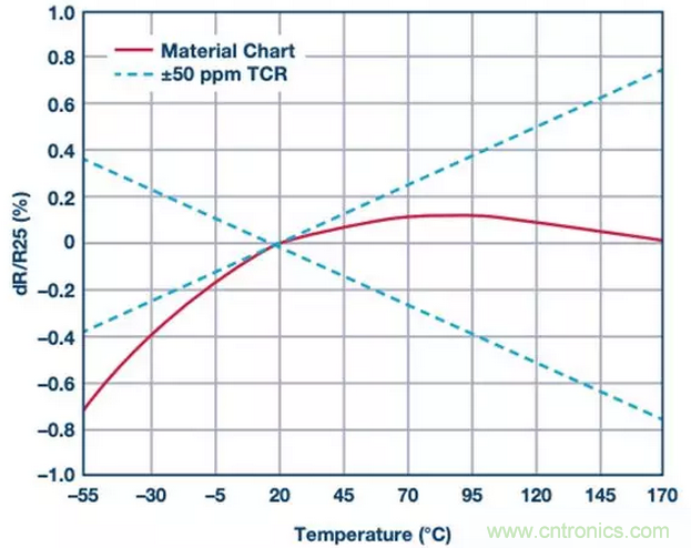 圖2. Bourns CSS4J-4026R型電流檢測(cè)電阻的拋物線形TCR曲線
