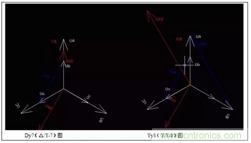 2、用相電壓矢量圖來識(shí)別Y/Δ 接法的聯(lián)接組別