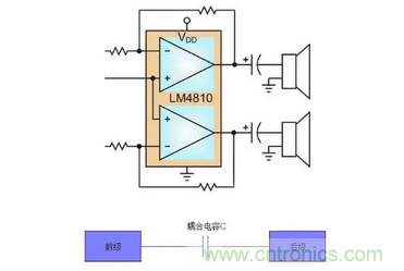 退耦電容:并接于放大電路的電源正負極之間,防止由電源內阻形成的正反饋而引起的寄生振蕩。