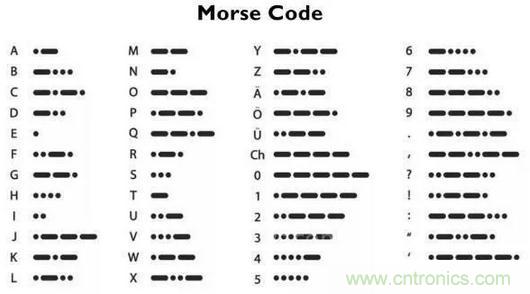 經(jīng)過亨利院長的點撥,莫爾斯逐步掌握了電磁學(xué)的知識,莫爾斯還向其他人虛心求教,終于制作出了電報機,還發(fā)明了著名的莫爾斯電碼,用點、橫和時間間隔代表26個英文字母和10個阿拉伯?dāng)?shù)字。一點就是繼電器的線圈開關(guān)閉合較短時間,上面的燈泡亮的時間也很短,一橫就是繼電器的線圈開關(guān)閉合較長的時間,上面的燈泡亮較長的時間,短和長是1:3的比例。然后在各個字母和單詞之間有固定的時間停頓,也就是繼電器不帶電,這樣就可以通過燈泡的亮和滅,即回路的通和斷,加上通和斷的時間,來表示一段報文了。