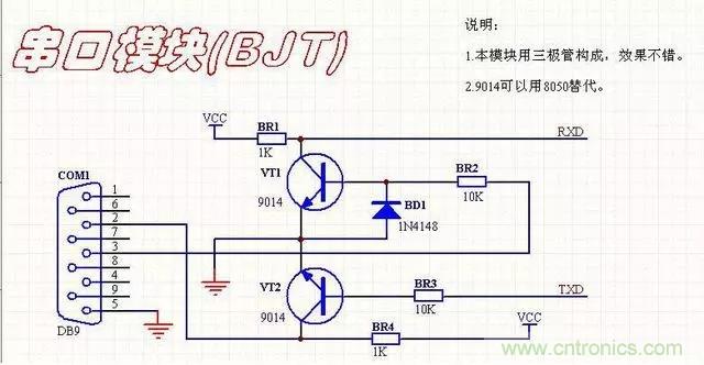 本電路是用三極管搭的,電路簡單,成本低,但是問題,一般在低波特率下是非常好的。