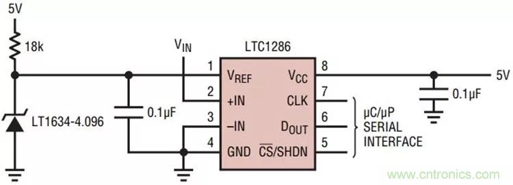 圖1:ADC 的基準(zhǔn)電壓源的典型用法