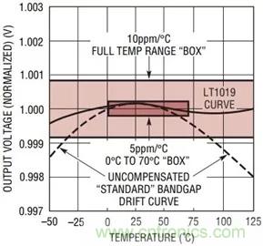 例如,指定為100ppm/°C的基準(zhǔn)電壓源傾向于在任何溫度范圍內(nèi)都有相當(dāng)好的線性度,因?yàn)樵黄ヅ湟鸬钠仆耆谏w了其固有非線性。相反,指定為5ppm/°C的基準(zhǔn)電壓源,其溫度漂移將以非線性為主。