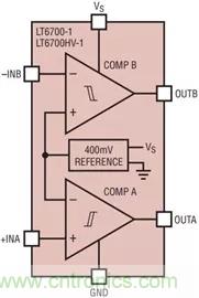 圖7:LT6700 支持與低至 400mV 的閾值進(jìn)行比較