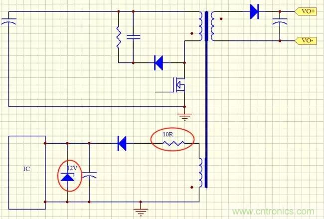 但是不要忘了,上面分析的這個還是比較好的情況來分析的,我們試想一下,你的變壓器Vcc繞組上的電壓不可能設計的那么準,比如在輸出空載時Vcc繞組是14V,如果主輸出功率比較大,Vcc可能上升都18V,20V甚至更高,另外Vcc電壓飄跟電源功率,跟變壓器繞制工藝也有很大關系,這些都是不好把控的,調試的需要限流電阻也不一定是10Ω,所以這個方案肯定是不行的。