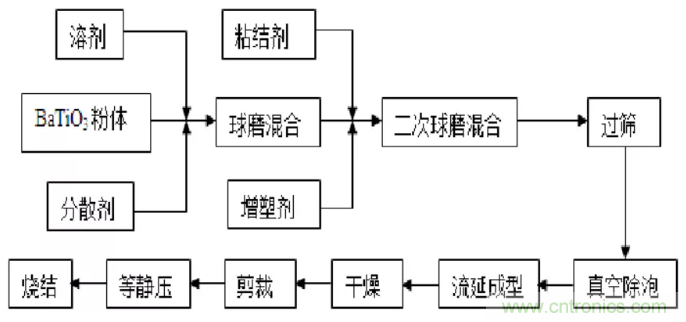 圖3 多層陶瓷電容器生產工藝流程