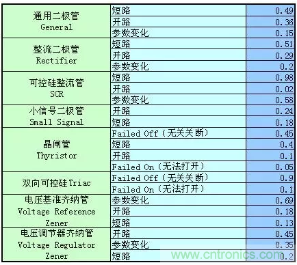 元器件失效模式分布