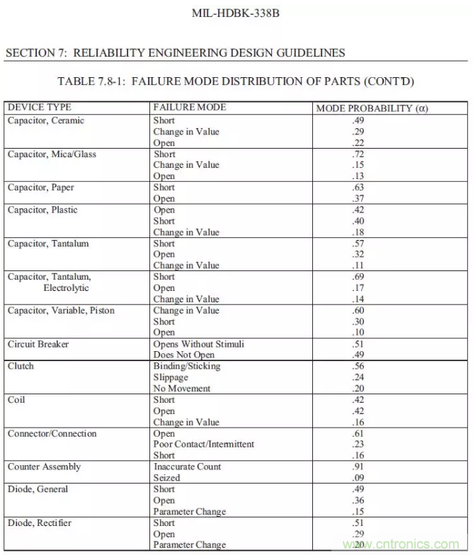 以下數字僅供參考,本身MIL-HDBK-338B是一份指導書性質的,所有的數字僅僅具有參考意義。