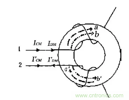 抑制共模干擾的主要方法是應用共模扼流圈。共模扼流圈是共模插入損耗中起主導作用的電感元件。它是在一個磁環/閉合磁路的上下兩個半環上,分別繞制相同匝數但繞向相反的線圈。