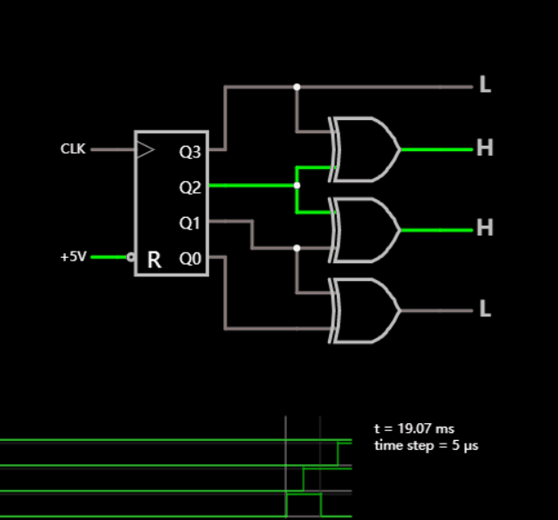 該電路以格雷碼進(jìn)行計(jì)數(shù),這是一種二進(jìn)制計(jì)數(shù)系統(tǒng),每次更新計(jì)數(shù)時(shí),只有一位數(shù)字發(fā)生變化。