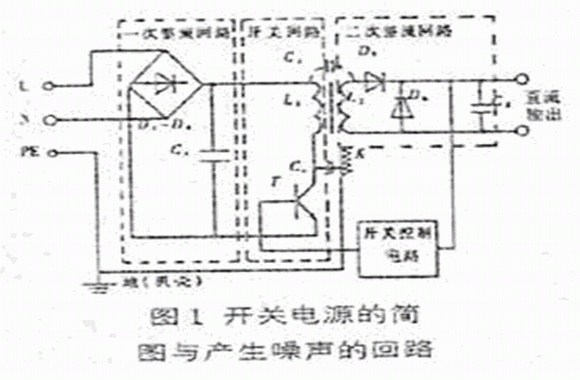 開關(guān)電源利用半導(dǎo)體器件的開和關(guān)工作,并以開和關(guān)的時間比來控制輸出電壓的高低,由于其通常工作在20KHz以上的開關(guān)頻率工作,開關(guān)電源內(nèi)的dv/dt、di/dt很大,產(chǎn)生嚴(yán)重的浪涌電壓、浪涌電流和其它各種噪聲。圖1是典型的開關(guān)電源的簡圖和產(chǎn)生噪聲的回路,含有大量高次諧波的噪聲通過閉臺回路向空間輻射電磁能量,即差模電流的輻對干擾。通常的閉合環(huán)形回路的形狀都是不規(guī)則的,這里我們只討論一般的模型,如圖2所示。