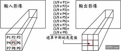 圖說:中值濾波器的運作概念示意圖。
