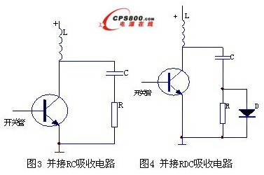 在開關管T 兩端加RCD吸收電路,如圖4所示。
