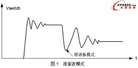 一般來說,可以采用軟開關技術來解決開關管的問題,如圖6所示。圖6給出了開關管工作在軟開關條件下的開關軌跡。軟開關技術主要減小開關管上的開關損耗,也可以抑制開關管上的電磁干擾。在所有的軟開關技術中,準諧振抑制開關管上電磁干擾的效果比較好,所以本文以準諧振技術為例,介紹軟開關技術抑制EMI。所謂準諧振就是開關管在電壓谷底開通,見圖7。開關中寄生電感與電容作為諧振元件的一部分,可完全控制開關導通時電流浪涌與斷開時電壓浪涌的發生。采用這種方式不僅能把開關損耗減到很小,而且能降低噪聲。谷底開關要求關斷時間中儲存在中的能量必須在開關開通時釋放掉。它的平均損耗為,由此公式可以看出,減小會導致大大降低,從而減小開關上的應力,提高效率,減小dv/dt,即減小EMI。