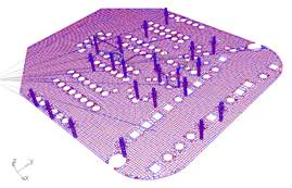 隨著當今集成電路對供電穩定性的要求,印制板設計工程師需要關注于低電壓、低翻轉門限與大電流、多層長線供電所造成的壓降。利用CST電磁工作室的穩恒電流求解器可以仿真整個PCB的電壓分布,如圖15所示: